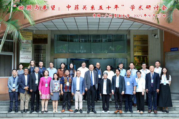 9月27日,时值中菲建交五十周年的重要历史时刻,暨南大学菲律宾研究中心与亚典耀大学中国研究系、菲律宾中华研究学会、迪黎曼学院菲中研究中心合作,在暨南大学成功举办“回顾与展望:中菲关系五十年”学术研讨会。来自中菲两国的十几位知名专家学者齐聚一堂,围绕双边关系的历史演进、现实挑战与未来前景展开深入研讨。